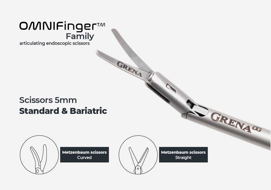 OMNIFinger™ Family - Challenging ligations are a thing of the past. Easy access and excellent visibility Articulating Endoscopic Scissors